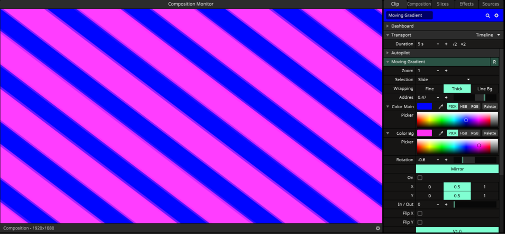 The Moving Gradient plugin for Resolume allows you to generate new and different types of gradients to add movement quickly and easily.