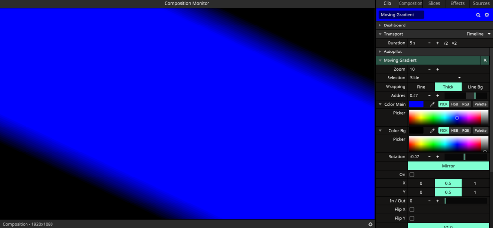 The Moving Gradient plugin for Resolume allows you to generate new and different types of gradients to add movement quickly and easily.